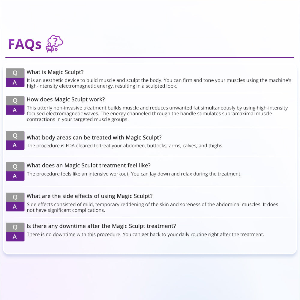 MagicCurve is one of the most popular body shaping machines for muscle building and body contouring, which promotes the continuous expansion and contraction of body muscles by stimulating the nerves, completing the passive and ultimate training of muscles.